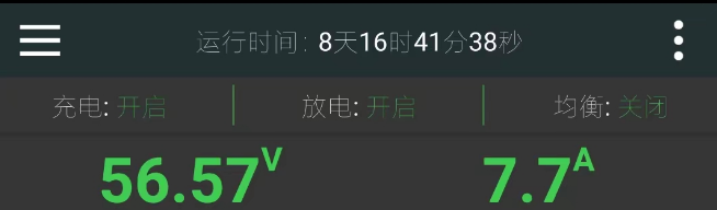 例子:锂电池组充电时的电压为56.57V,电流7.7A。充电功率为56.57*7.7=435.589 单位W